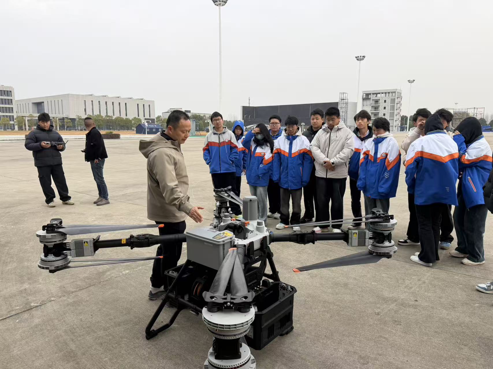 12月12日,太湖職業(yè)技術(shù)學校組織2025級無人機專業(yè)師生走進大疆行業(yè)應用、北斗智航公司,開展一場理論性與實操性的“無人機+行業(yè)應用”實踐教學活動,沉浸式解鎖“無人機+”前沿科技教學。學校政教處主任方明華率隊,無人機專業(yè)班主任萬家兵、相關(guān)專業(yè)課教師、以及無人機專業(yè)班級學生30余名師生代表參加活動。